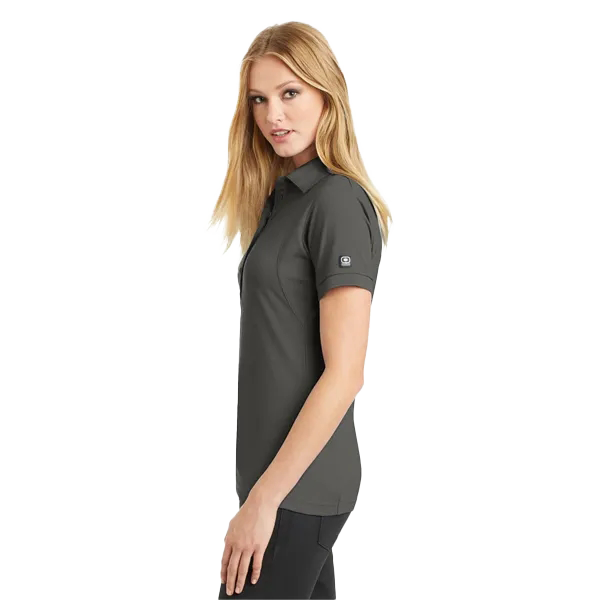 OGIO - Jewel Polo. Impeccably designed for women everywhere, the Jewel has a contoured fit and streamlined style. 5-ounce, 100% poly pique with stay-cool wicking technology Self-fabric collar Flat knit cuffs Arm seaming accent Set-in, open hem sleeves OGIO heat transfer label for tag-free comfort 6-button placket with dyed-to-match OGIO buttons OGIO badge on left sleeve